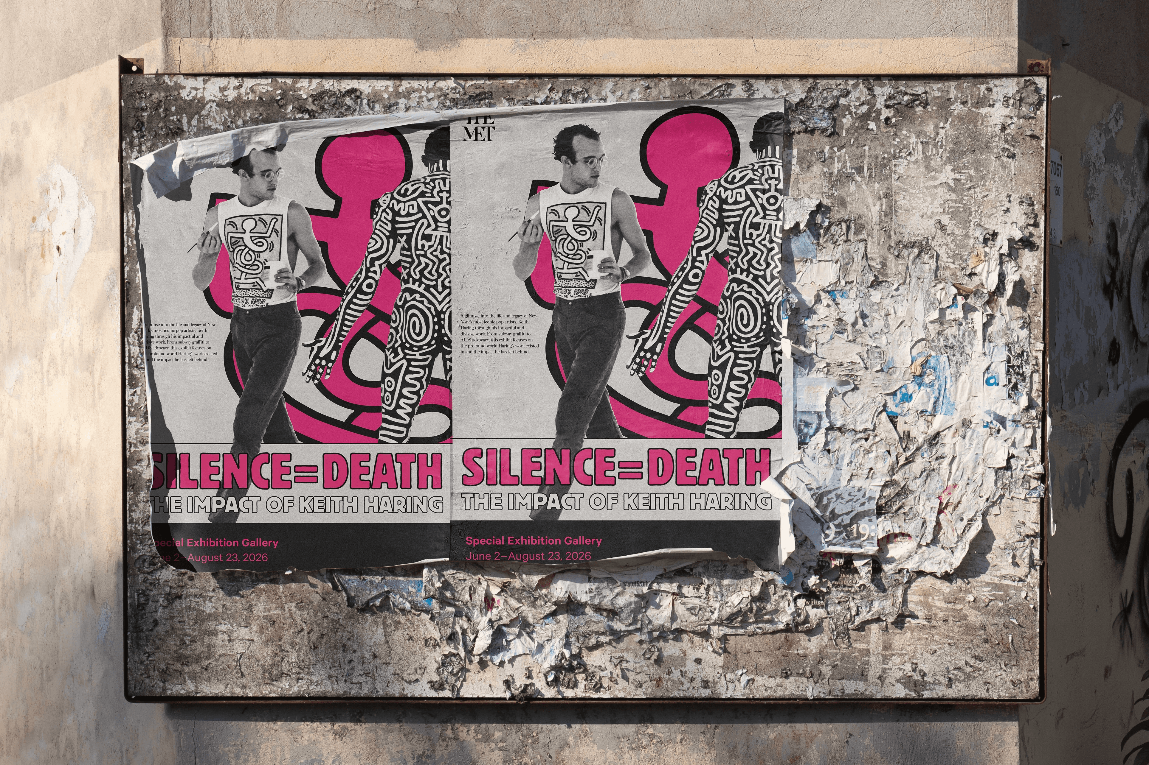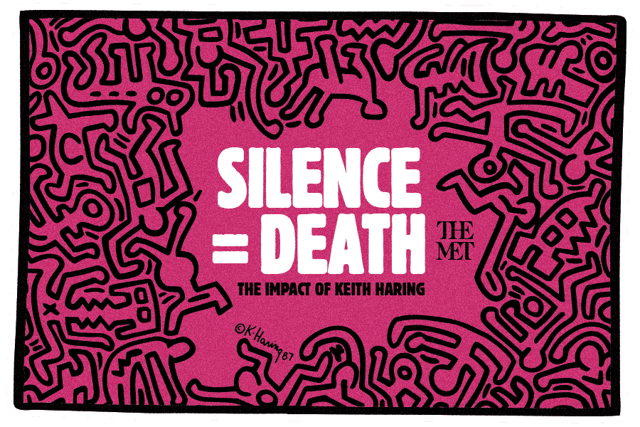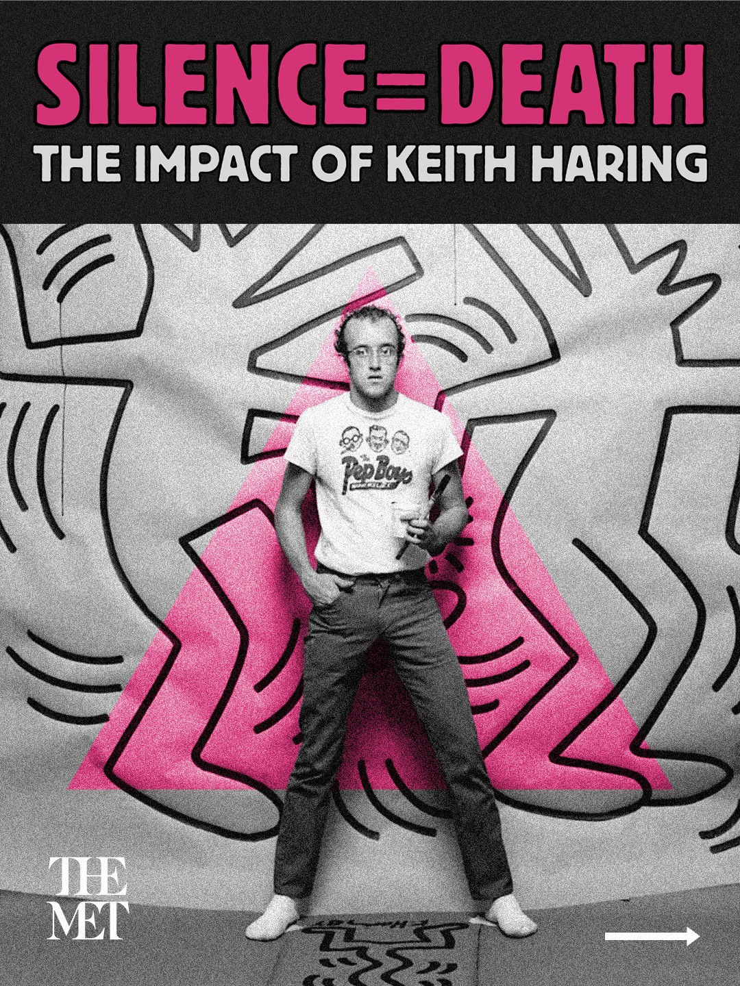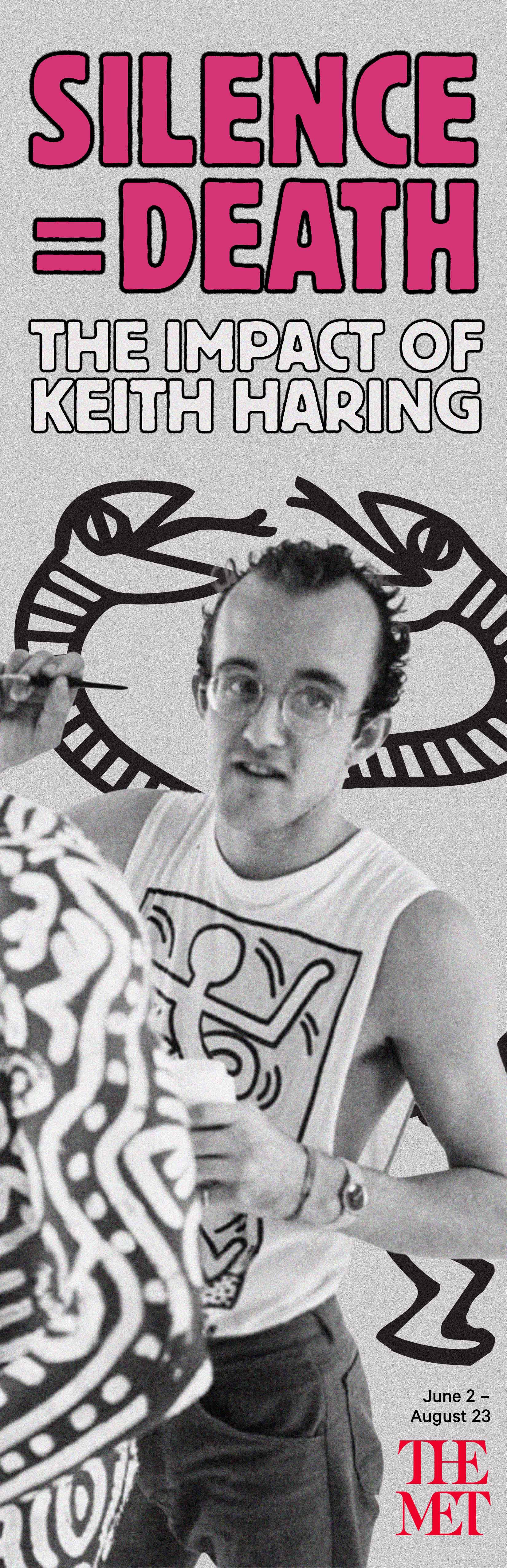 The imagery used in this project directly puts Keith Haring in the same focal point as the works he created. The message of this exhibit to not be silent in the face of adversity and create works that you stand by. This exhibit is about politics, pop culture, and undeniable wit, all things Keith Haring stands for so I chose to bring this out through the imagery. The pink is the main focal point of this system, it is in reference to the pink triange, a very important symbol in LGBTQ+ history and a common motif seen in Haring's work.