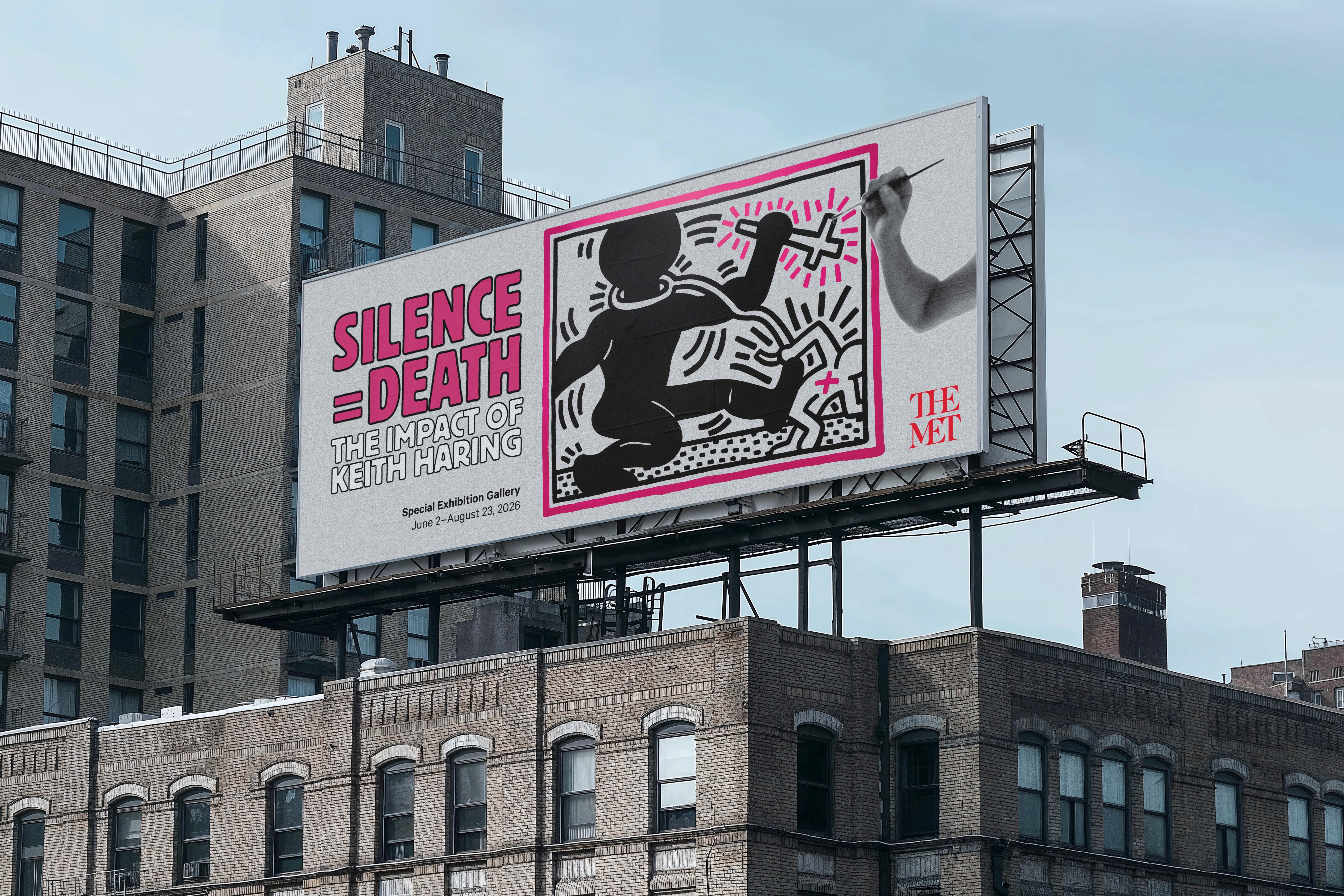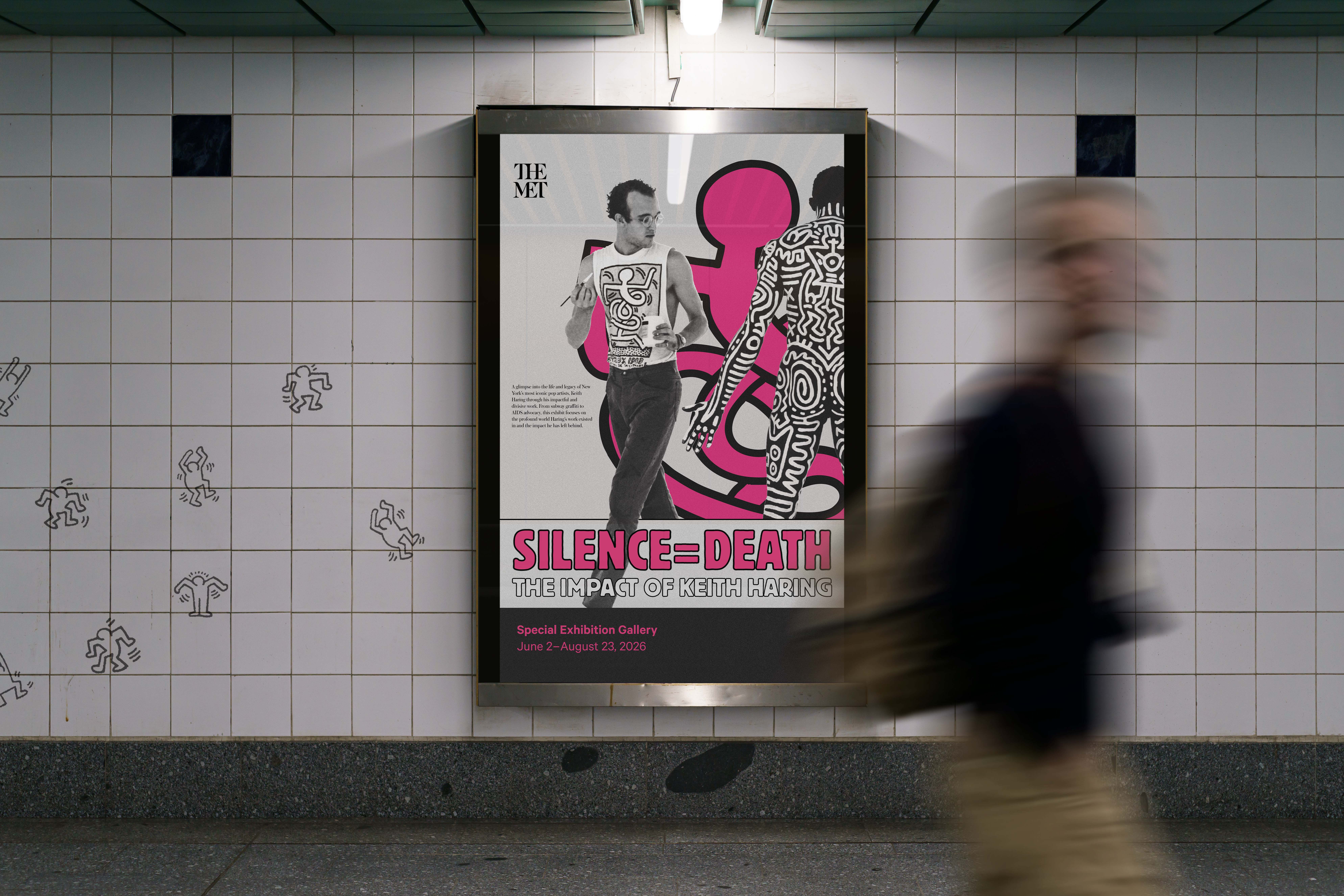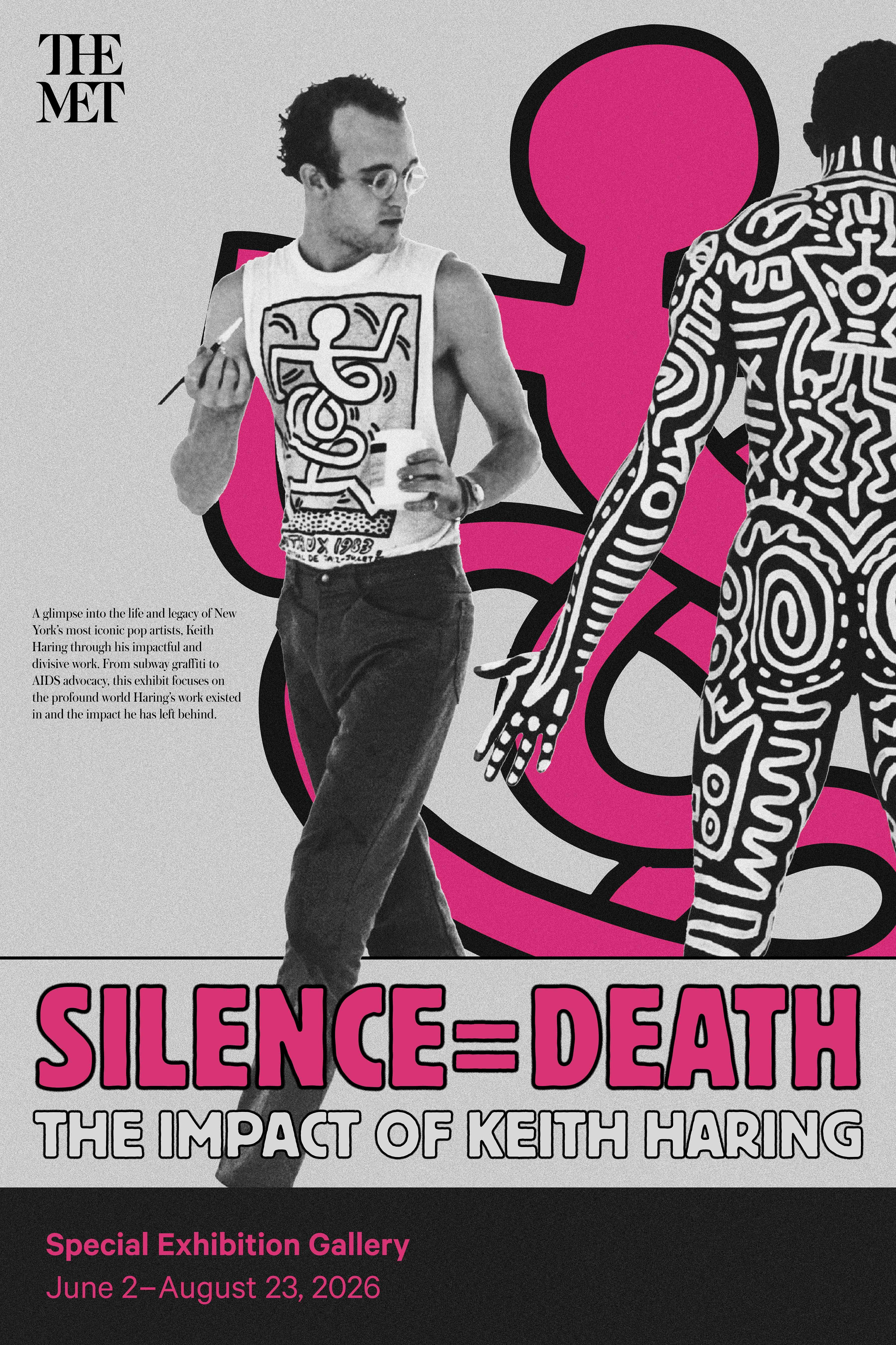 The imagery used in this project directly puts Keith Haring in the same focal point as the works he created. The message of this exhibit to not be silent in the face of adversity and create works that you stand by. This exhibit is about politics, pop culture, and undeniable wit, all things Keith Haring stands for so I chose to bring this out through the imagery. The pink is the main focal point of this system, it is in reference to the pink triange, a very important symbol in LGBTQ+ history and a common motif seen in Haring's work.